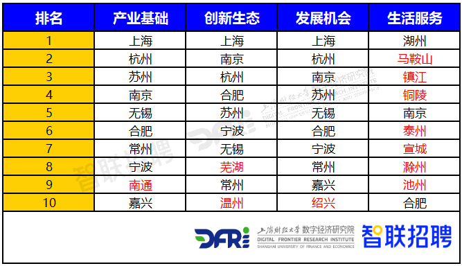 备注:红色字体为总排名未进前10,分指标进入前10城市