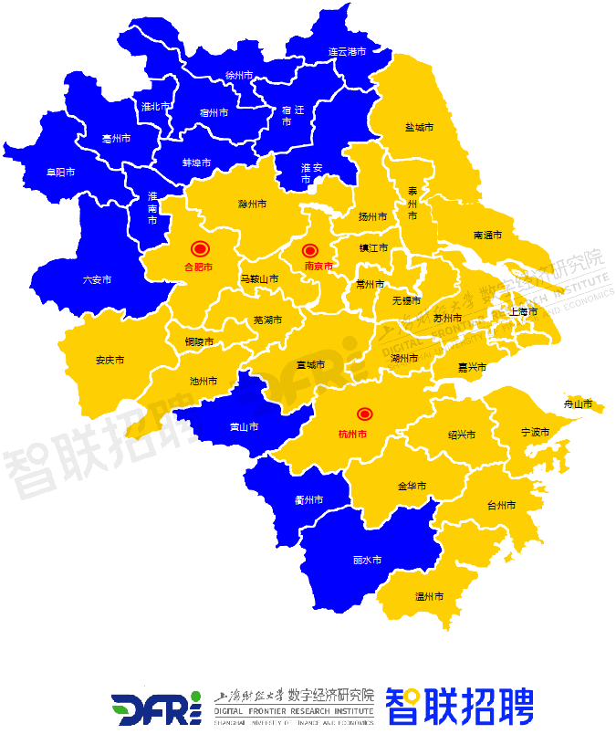 2.蓝色区域为江苏省、浙江省、安徽省区域内长三角非中心区城市